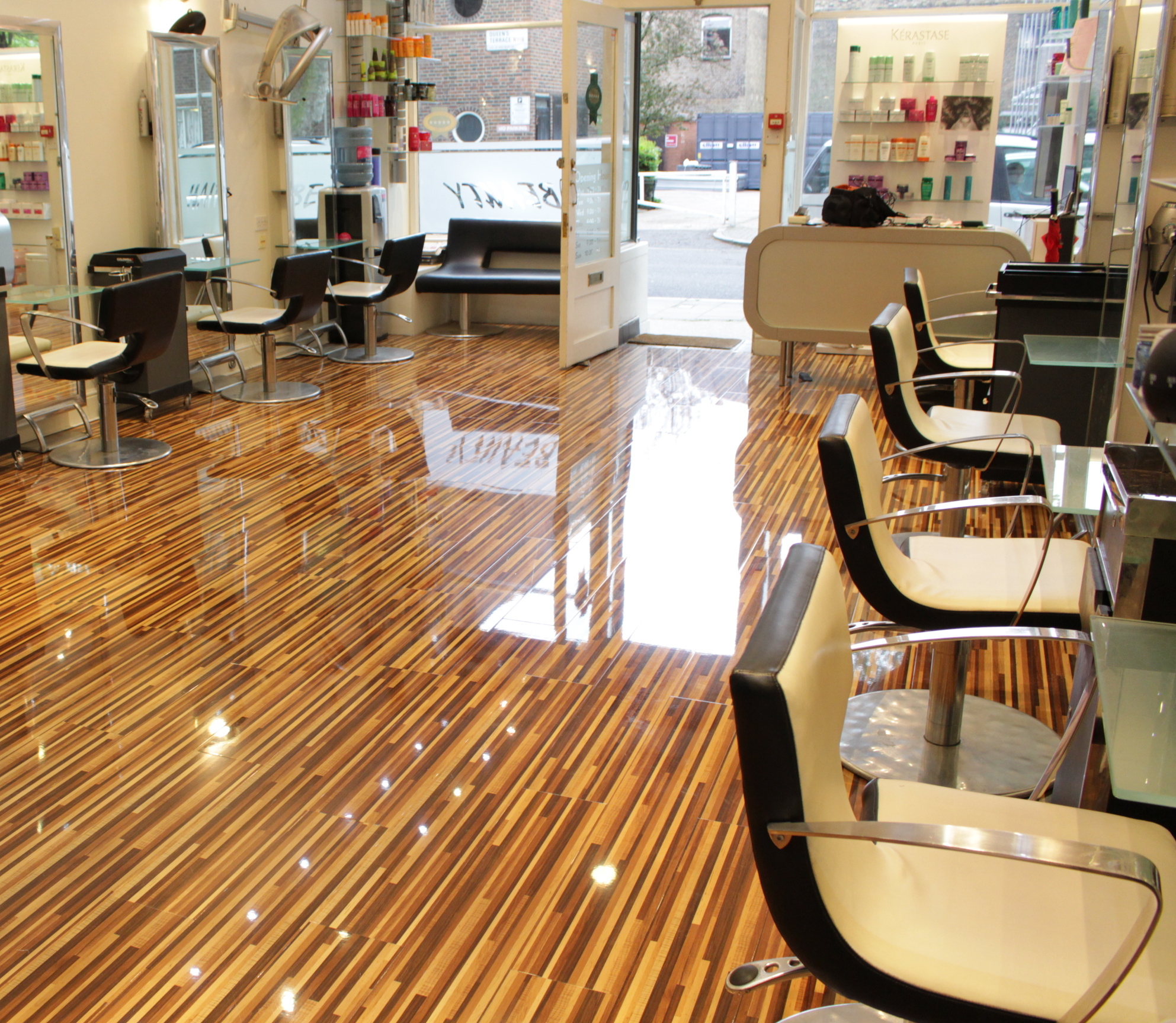 This flooring option offers strips of red and gold tones throughout a natural wood-style laminate flooring. Looking as though it’s composed of a variety of natural wood strips, this flooring offers both a modern aesthetic as well as that classic hardwood look we all know and love. Plus, the high-gloss finish of this floor makes for a surface that brilliantly reflects natural light around the room!